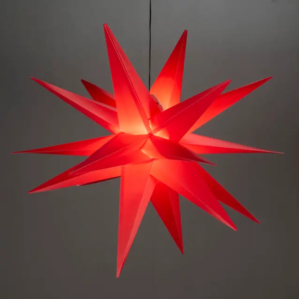 Skab en magisk julestemning med denne massive adventsstjerne i rød plastik og imponerende 3D-design, med indbygget LED-belysning. [Energiklass G]