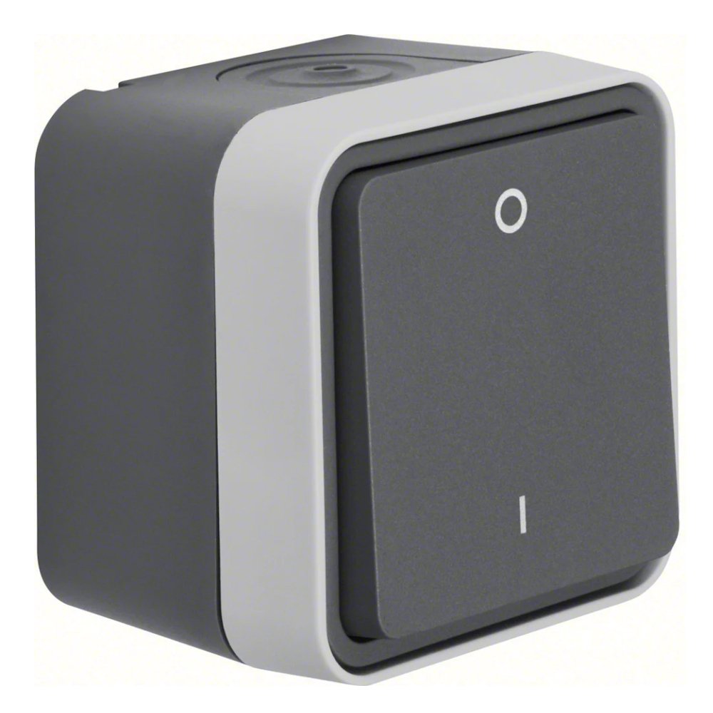 Afbryder 2-Polet W.1 Overflademonteret Tænd/Sluk 76x76x61,5mm 10A 250V IP55 Grå Hager