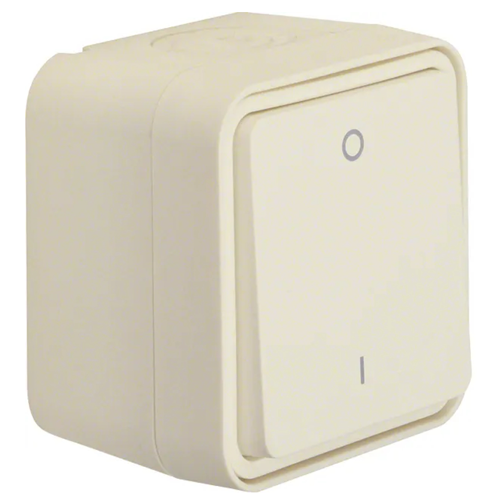 Afbryder 2-Polet W.1 Overflademonteret Tænd/Sluk 76x76x61,5mm 10A 250V IP55 Hvid Hager