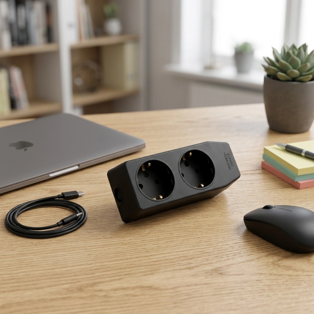 Oplev den perfekte balance mellem holdbarhed og stil med denne sorte 2-vejs stikdåse, udviklet til dig, der ikke vil gå på kompromis med kvaliteten. Stikdåsen er fremstillet af slagfast nylon i høj kvalitet og er konstrueret til at tåle daglig brug med høj belastning, hvilket giver en overlegen levetid sammenlignet med standardalternativer i plast. Sikkerheden er i fokus med fuldt jordede udtag, der yder vigtig beskyttelse mod elektriske fejl. Med sine ergonomiske, lige udtag giver stikdåsen nem tilslutning, selv på trange steder, mens den elegante, matsorte finish gør, at den falder diskret ind i både professionelle kontormiljøer og hjemmet. Uanset om du leder efter en pålidelig løsning til skrivebordet eller en robust forlængelse til krævende miljøer, leverer denne 2-vejs stikdåse en sikker, effektiv og æstetisk tiltalende opgradering af din elinstallation.
