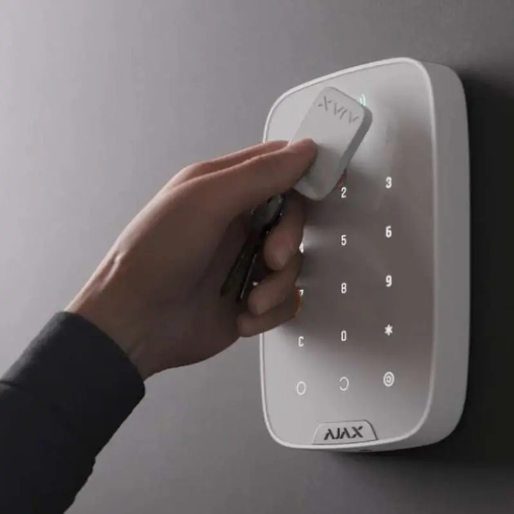 For at deaktivere sikkerhedssystemet skal du blot placere taggen på læseren på tastaturet. Denne kopibeskyttede nøgletag giver dig mulighed for at administrere sikkerhedstilstande uden adgangskode, brugerkonto og adgang til Ajax-appen. For at identificere brugere hurtigt og sikkert har KeyPad Plus DESFire-teknologi. Det er den bedste løsning i sin klasse til kontaktløs brugeridentifikation med et kort eller en nøglebrik. DESFire er baseret på den internationale standard ISO 14443 og kombinerer omfattende 128-bit kryptering og kopibeskyttelse. Denne teknologi bruges også i transportsystemerne i europæiske hovedstæder og NASA's adgangssystem. I appen kan du indstille navn og adgangstilladelser for hvert kort. Du ved altid, hvem der ændrede sikkerhedstilstanden, og hvornår - hver handling registreres i hændelsesloggen. En systemadministrator kan tilbagekalde eller begrænse Pass-adgangstilladelser i realtid. For at tilføje Passe Tag til systemet skal du blot åbne Ajax-appen, gå til indstillingerne og præsentere kortet for tastaturet.