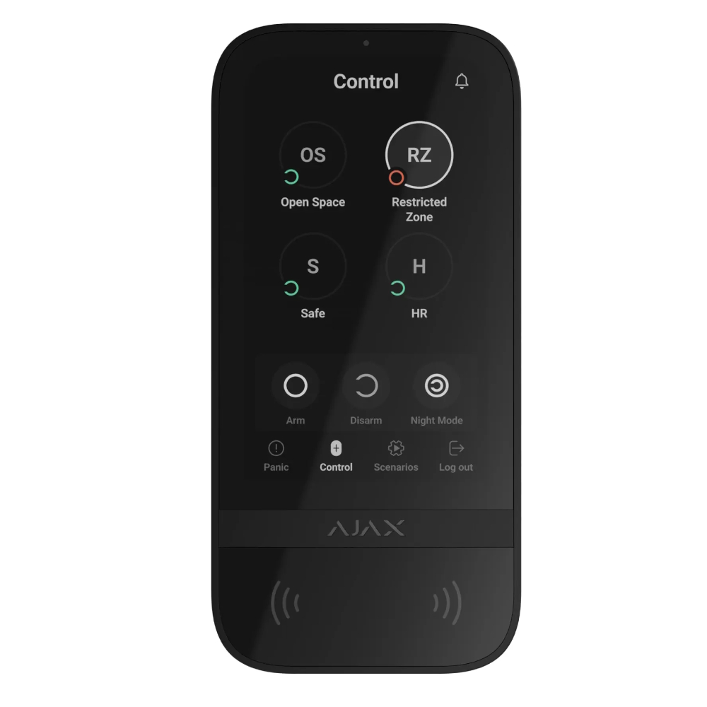 Trådløst kontrolpanel med en 5-tommer IPS touchscreen, der gør det nemt at styre dit Ajax indendørs sikkerhedssystem. Det giver dig mulighed for at aktivere og deaktivere systemet, vælge sikkerhedstilstande og aktivere scenarier med et swipe på skærmen eller ved at bruge kontaktløse kort, tags, PIN-koder eller din smartphone via Bluetooth BLE. Skærmen aktiveres automatisk, når du nærmer dig, og lysstyrken justeres til lysforholdene. Med indbyggede panik- og nødfunktioner, manipulationsdetektion og tydelige lyd- og visuelle indikatorer tilbyder den både bekvemmelighed og sikkerhed. Nyt ved denne model er integrationen, der afspejler brugerfladen i Ajax-appen for en intuitiv brugergrænseflade.