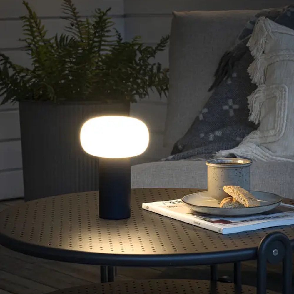 Effektiv, bærbar og opladelig til sommeraftener. Antibes loungelampe lyser op med justerbart hvidt eller farvet lys, perfekt til terrassen, udestuen eller som et stemningsfuldt element indendørs. Genopladelig med USB, lyser i op til 9 timer og kan modstå både regn og vind. En moderne klassiker til aftener, du vil huske.