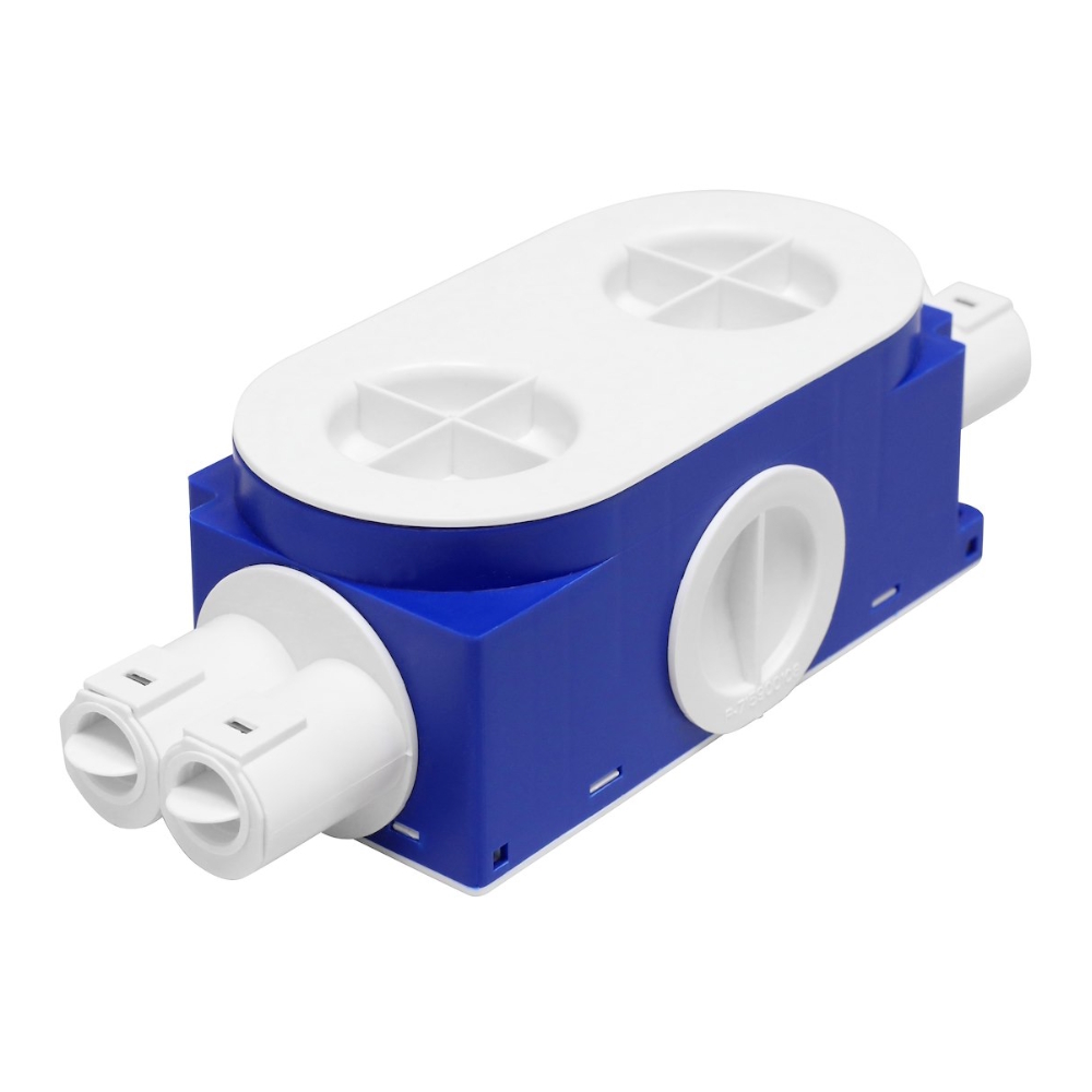 Modulsystemet kan kombineres, som du ønsker. Med et udvalg af tilbehør er der en løsning til alt! Den patenterede Twist-låsning af forbindelser og tilbehør muliggør tilslutning af rør op til 50 mm til boksene! Standardforbindelser, der medfølger boksene, er altid til både 16 og 20 mm rør. Forbindelserne er udstyret med låseplader i rustfrit stål og tætningspropper med håndtag. Håndtaget eliminerer behovet for værktøj ved afmontering. Fås som enkeltbokse, 1,5 bokse og dobbeltbokse. Alle bokse leveres med gipsafdækning. Fremstillet af halogenfri plast, der er genanvendelig og miljøvenlig.