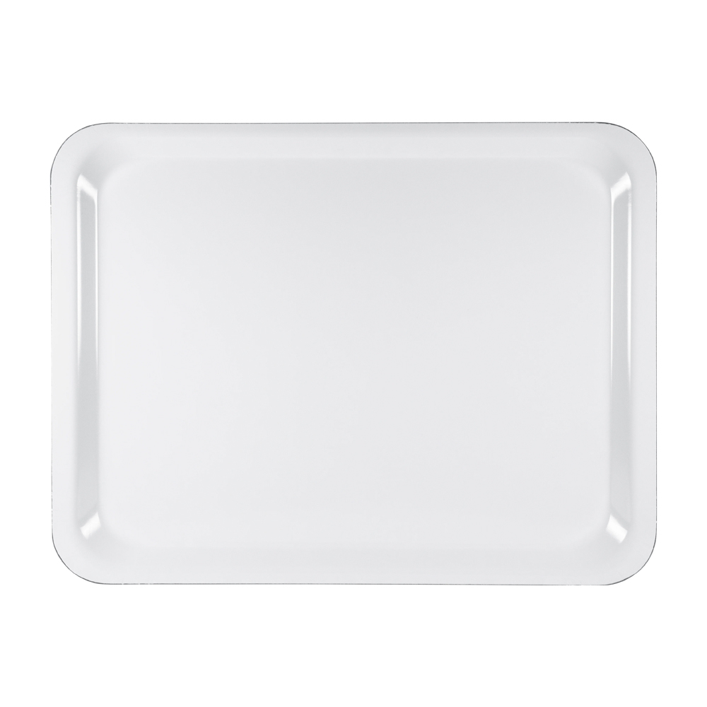 Holdbar bakke 36x28cm i hvid laminat, perfekt til brug i frokostrestauranten eller caféen.