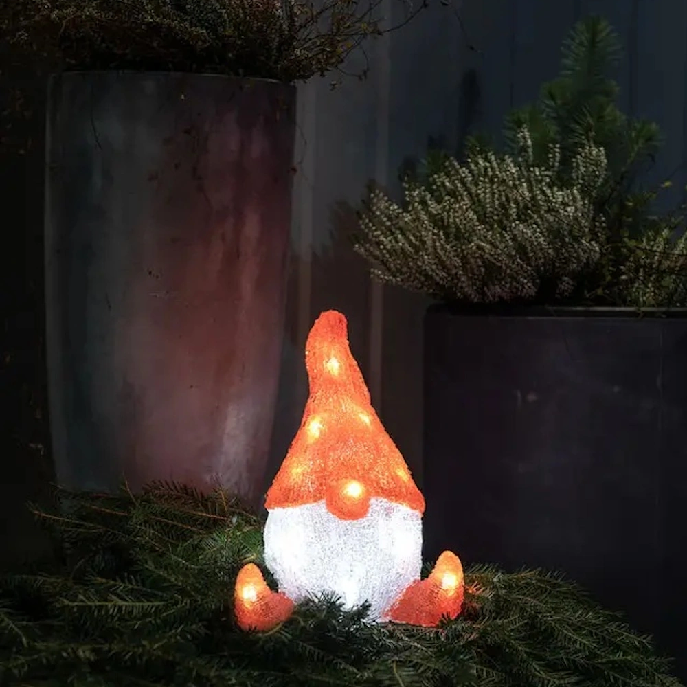 Batteridrevet akrylnisse fra Konstsmide med 16 varmhvide LED, 26 cm høj juledekoration, der spreder et stemningsfuldt lys indendørs.