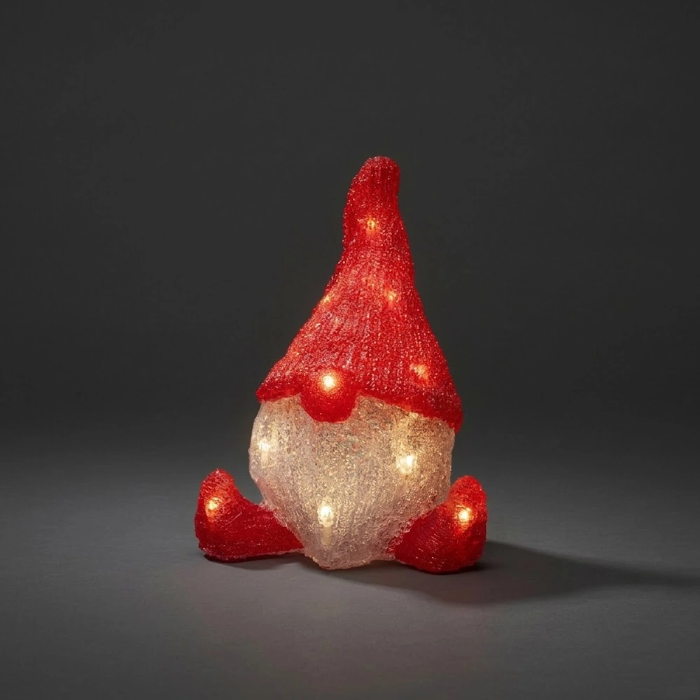 Batteridrevet Julemand Akryl 16 Varm Hvid LED 26x20cm IP20 Klar/Rød Konstsmide