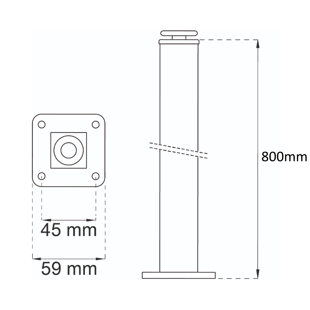 Bordben lavet af stålrør i firkantet profil 25x25mm. Højden kan justeres ca. 10mm fra A-målet for at kompensere for ujævne overflader. Dette gør bordet stabilt. Bordben med justerbare ben for at kompensere for ujævne overflader. Dette gør bordet stabilt. Kan også monteres på møbelhjul til et flytbart bord, lænestol osv.