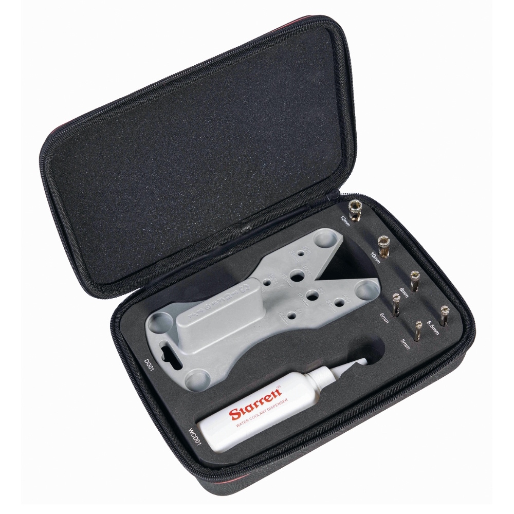 - Indeholder: 5 mm, 6 mm, 6,5 mm, 8 mm, 10 mm og 12 mm. Inkluderer vandflaske og diamantfliseboreskabelon.