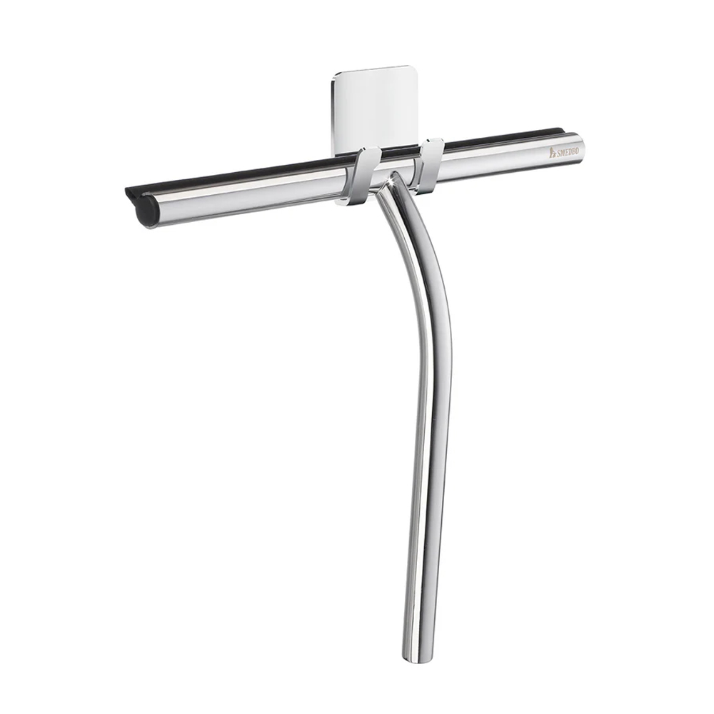 Stilfuld bruseskraber med selvklæbende holder. Den praktiske løsning betyder, at du ikke behøver at have bruseskraberen på gulvet. Modellen med sit afrundede håndtag er en bestsellerklassiker og fås også i en stilfuld matsort version. Den er lavet af rustfrit stål med en forkromet, skinnende overflade og et sort silikoneblad. Med en bruseskraber lige ved hånden holder du dine brusevægge pæne og undgår kalkpletter.