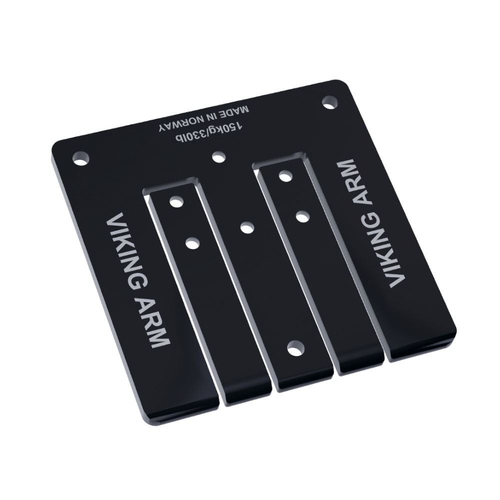 De 6 mm tykke sorte XL-fødder (bundplade) leveres som standard med Viking Arm Long, men er også kompatible med Viking Arm - The Original, hvilket giver en løftekapacitet på 150 kg.