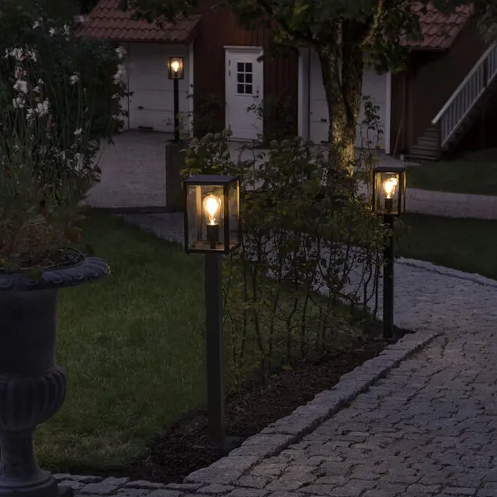 Pullert Gnosjö Konstsmide Carpi Low E27 Black er en elegant pullert med et åbent design.