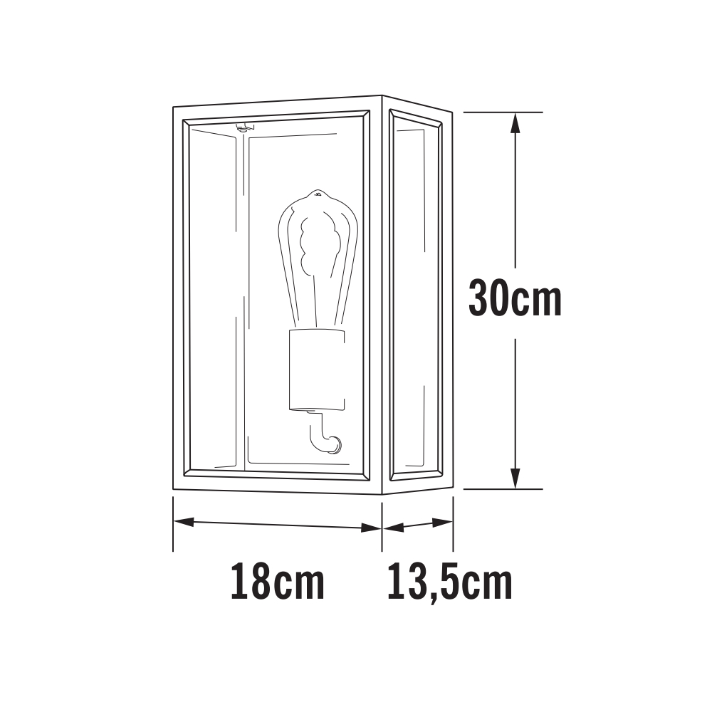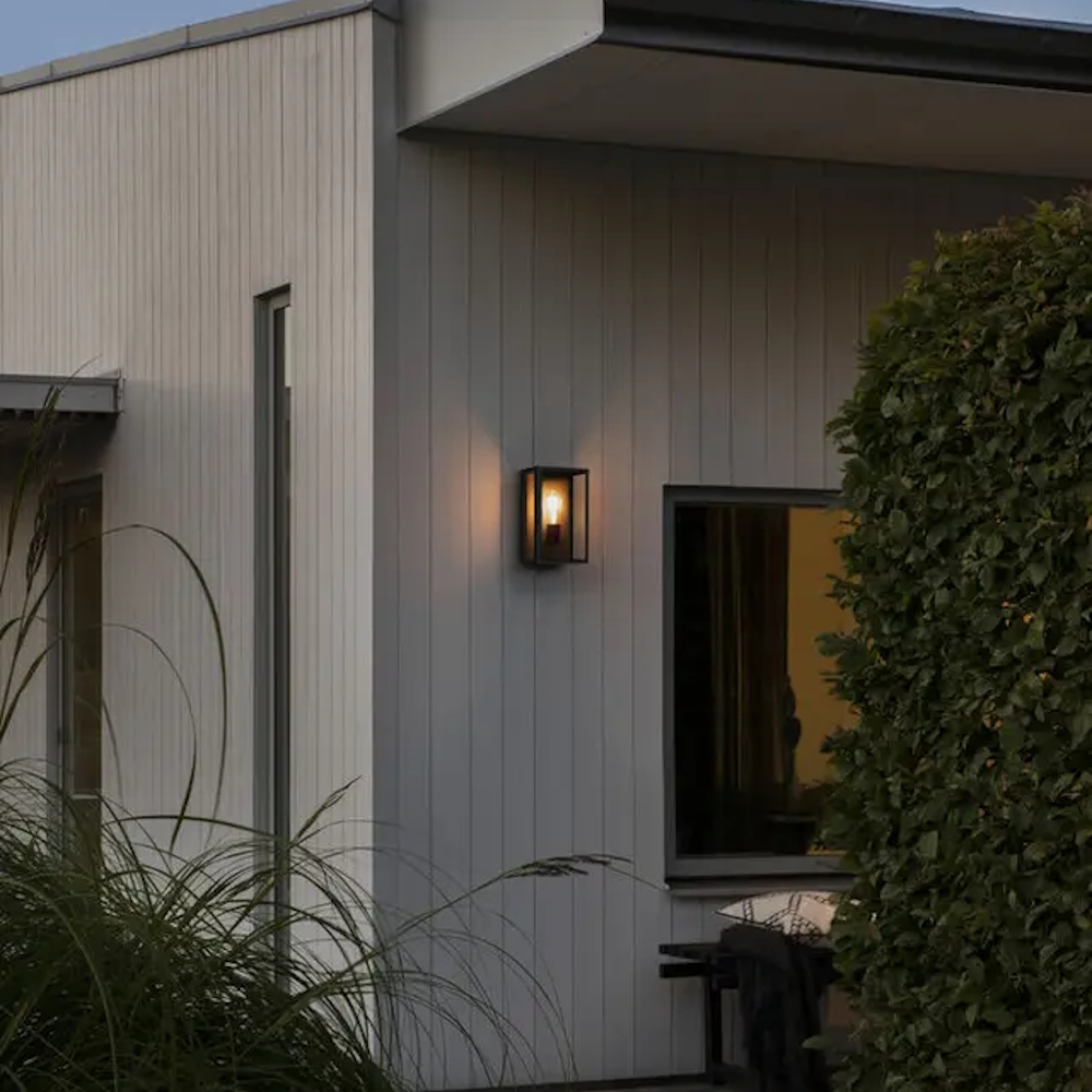 Væglampe Konstsmide Carpi Medium er en stilfuld facadebelysning med et åbent design. Lampens design er stilfuldt og appellerer til de fleste med sin sorte stålkonstruktion og klare glas sider. Passer perfekt ved indgangsdøren.