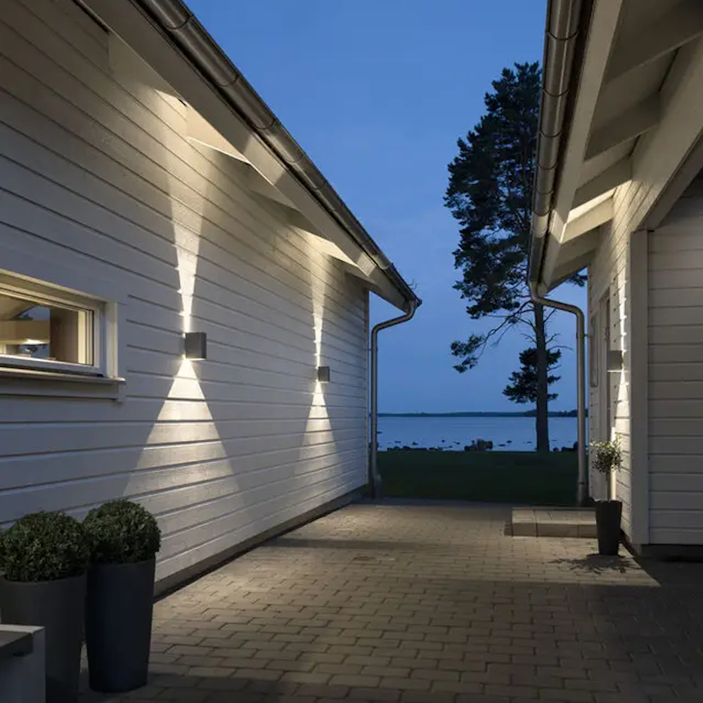 Cremona facadebelysning i antracitgrå malet aluminium er en af Konstsmides mest populære armaturer i Cremona-serien. 2 stk. 3W LED med justerbar strålevinkel mellem 0-90 grader.
