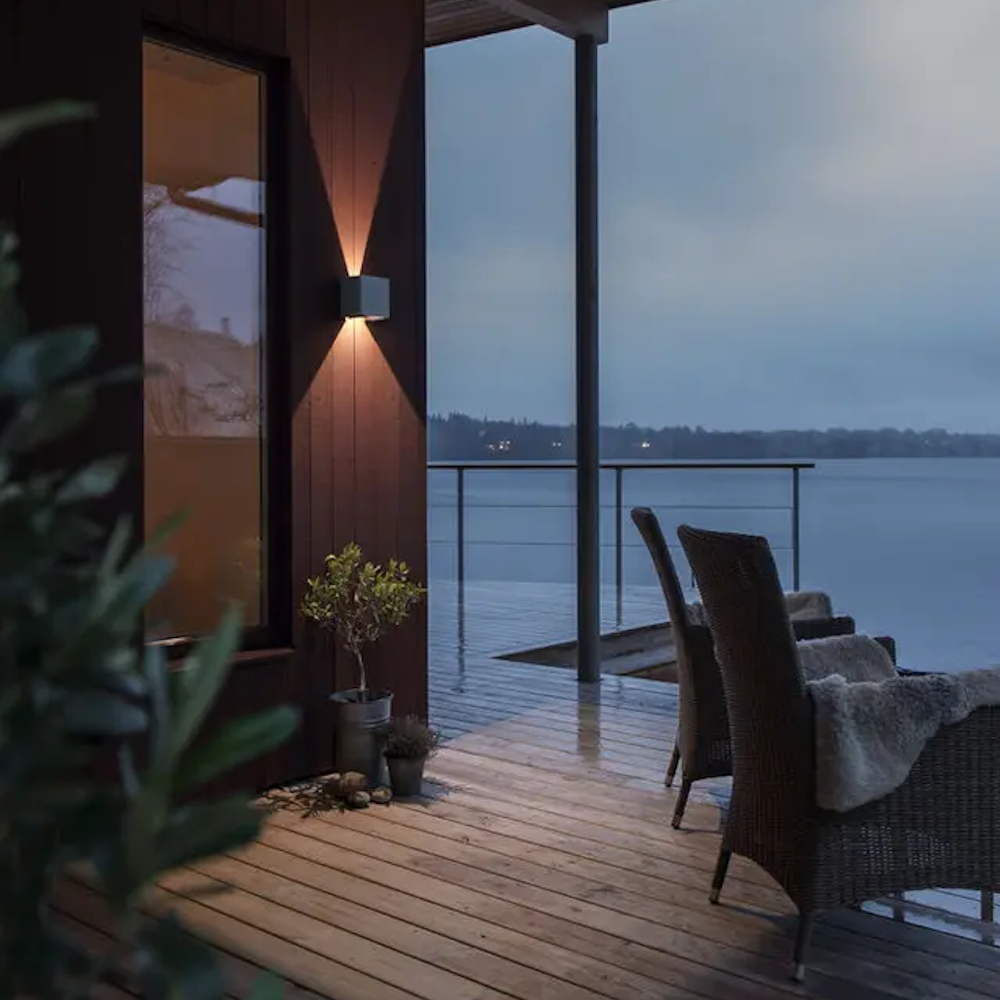 Cremona væglampe 2x3W "High Power" LED aluminium. Cremano væglampen fra Konstsmide er en væglampe af høj kvalitet til udendørs brug. Den er lavet af malet aluminium for at holde længe i det barske udendørsmiljø. Væglampens enkle design som en kube er særligt velegnet til huse med en mere moderne arkitektur, men den neutrale form kan også passe ind i ældre miljøer. Armaturet giver en lyskegle nedad og en opad og skaber et timeglaslignende lysmønster på facaden. Lys ved indgangen giver et imødekommende indtryk, og for gæsten er der aldrig nogen tvivl om, hvor man skal gå ind. Placer gerne flere ens lamper for at give et godt lys.
