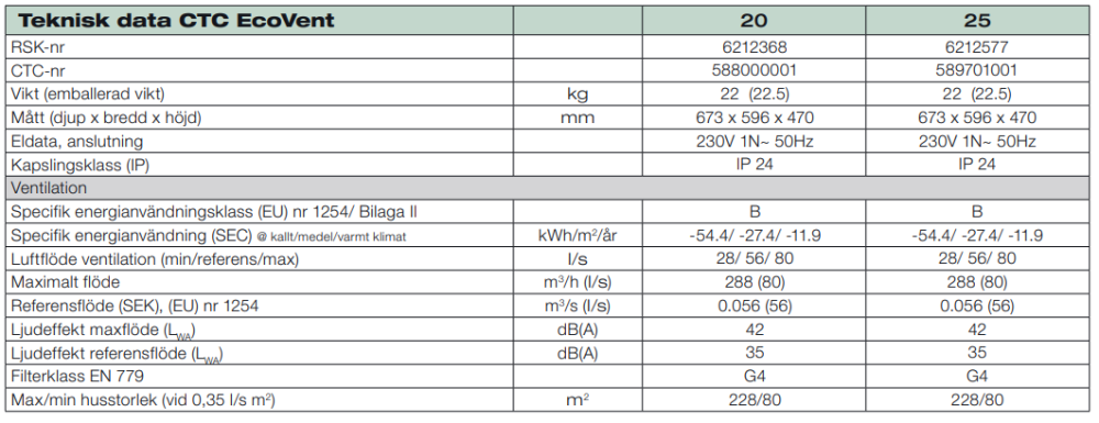 Den förbrukade luften ventileras bort och ny frisk luft tillförs huset genom husets egna tilluftsdon. Anpassad för placering ovanför CTC EcoZenith i360, CTC GSi 600, CTC GS 600. Kan även placeras fristående vid behov.