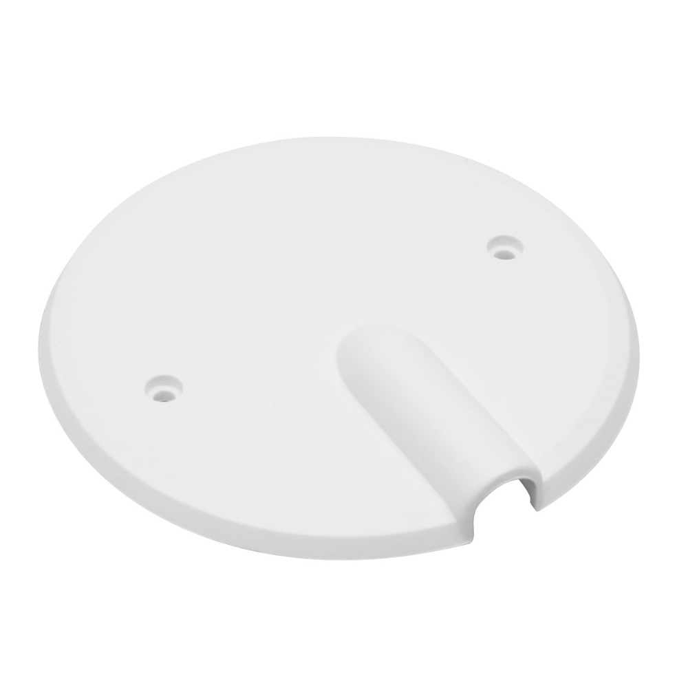 Dæksel til apparat- og samledåser med stikkontakt til kabel. Skrues på med dåsens fastgørelsesskruer. Halogenfri.