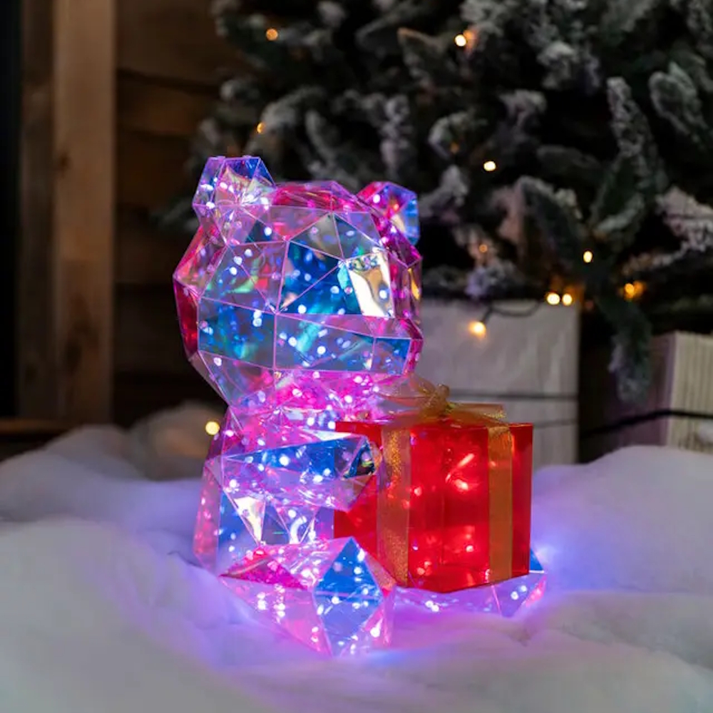 Spred glæde med denne legende LED-bamse, en farverig lysdekoration med glitrende diamant- og prismeeffekt.