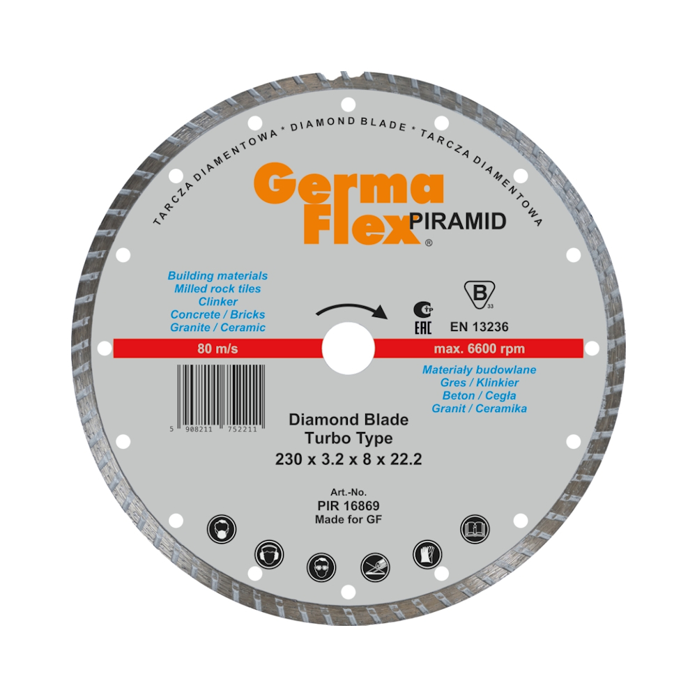 Diamantskæreskive Flise Piramid Turbo 230x3,2x22,2mm Germaflex