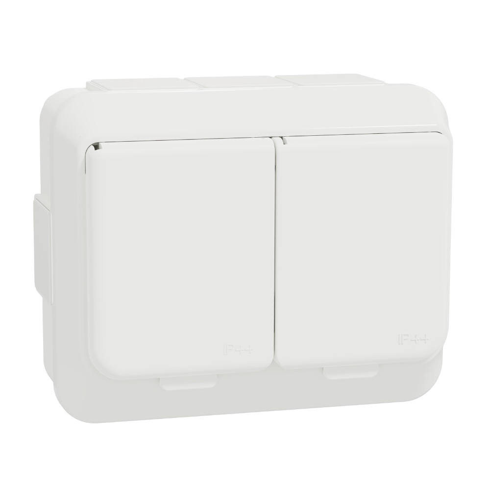 Dobbelt Stikkontakt Med Låg Exxact 2-Vejs 16A 250V IP44 Hvid Schneider Electric