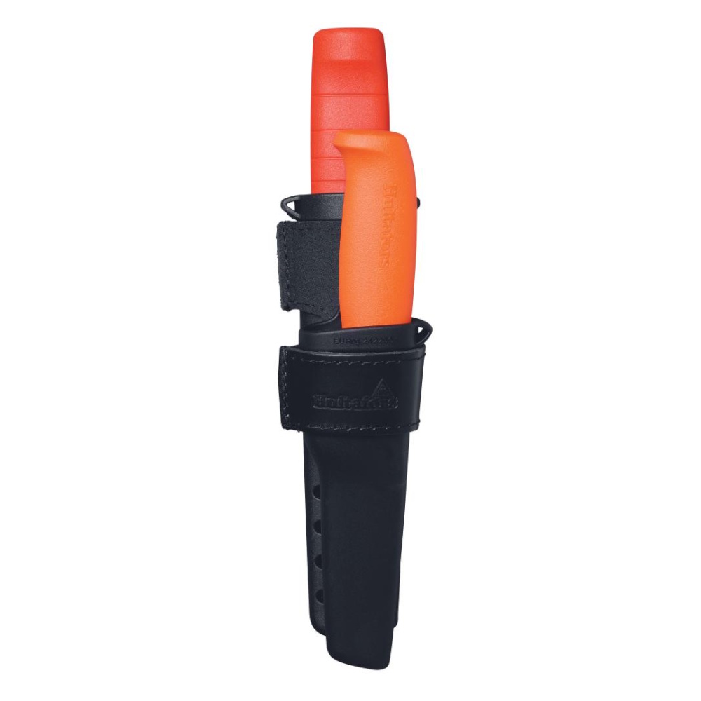 Mejsel EDC 25 mm og håndværkskniv HVK i dobbelthylster. Hylsteret er lavet af slagfast PP-plast, der er samlet med nitter og slidstærkt læder, kan fastgøres til bælte eller knap. Klinge af japansk stål og håndtag der kan modstå hårde hammerslag.