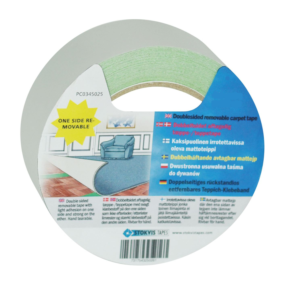 Aftagelig tæppetape med den ene side med stærkere klæbemiddel og den anden side med et "kændere" klæbemiddel. Efterlader ikke klæberester på gulvet efter fjernelse. Kan rives af i hånden. Klæber til de fleste overflader, velegnet til kortvarig montering af f.eks. entrémåtter eller andre ting såsom messeskilte eller informationsark. Erstatter nåle, hæfteklammer og andre monteringsmuligheder. Nem at påføre og nem at bruge. Udover at være god til tæpper, er der en række områder, hvor denne tape gør monteringen nemmere.