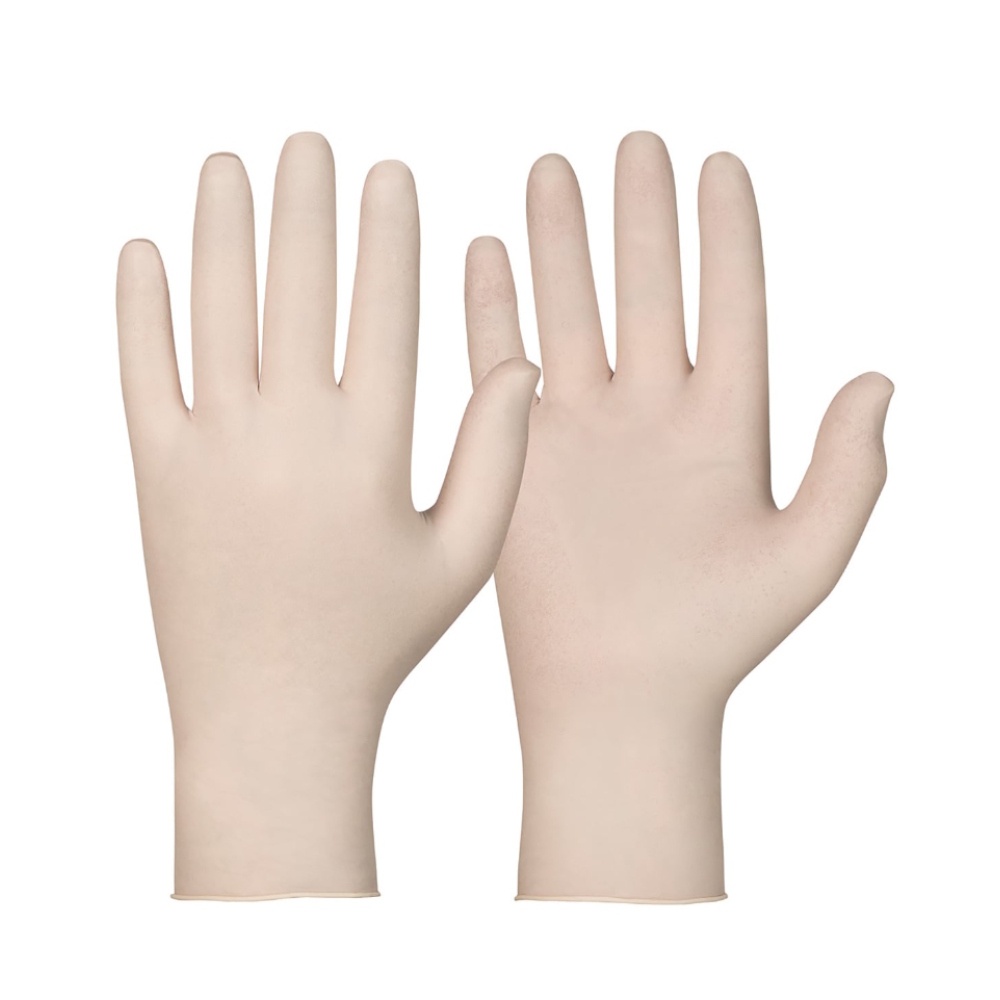 Engangslatexhandsker. Pudderfri. Ru overfladestruktur for bedre greb. Godkendt til medicinsk brug (EN455).