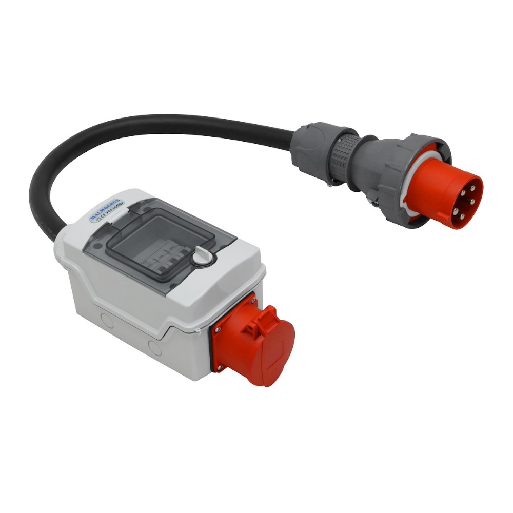 Bærbar fejlstrømsafbryder 3-faset. Præmonteret med CEE-DON. Nem at placere foran dit forsyningscenter.