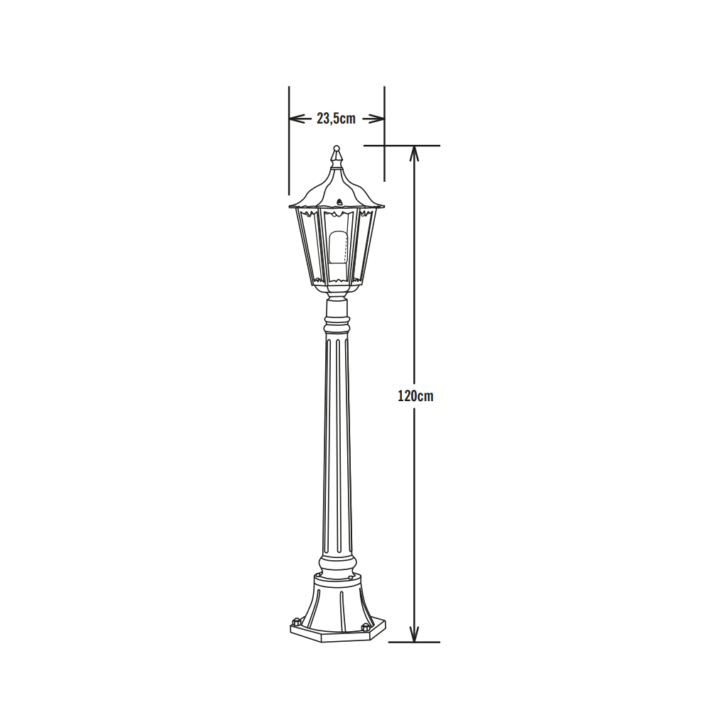 Firenze pullert 120cm i grønlakeret aluminium med klart glas, en klassisk og holdbar udendørsbelysning til haven, indkørslen eller indgangen. E27 fatning, maks. 100W. Stolpe medfølger.