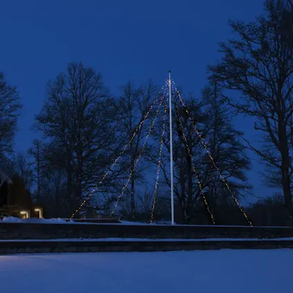 Flagstangsløjfe fra Konstsmide med 5stk løkker, der har 100stk LED-lys pr. løkke, sort blødt kabel. Flagstangsløjfen har et 10m forbindelseskabel til den første lygte, afstanden mellem lysene er 11cm. Til udendørs brug.