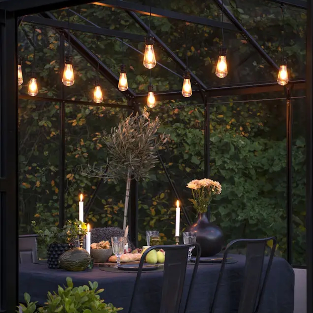Byg videre med 10 udskiftelige, ravfarvede LED-pærer og få endnu mere stemningsfuldt lys til dine bedste øjeblikke.