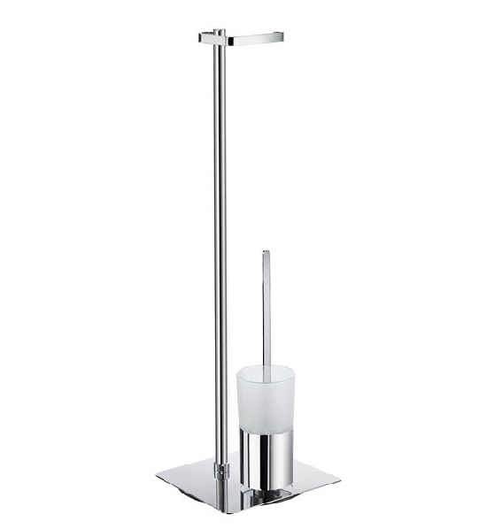Outline kombi toiletpapirholder/toiletbørste i poleret krom med porcelænsbeholder.