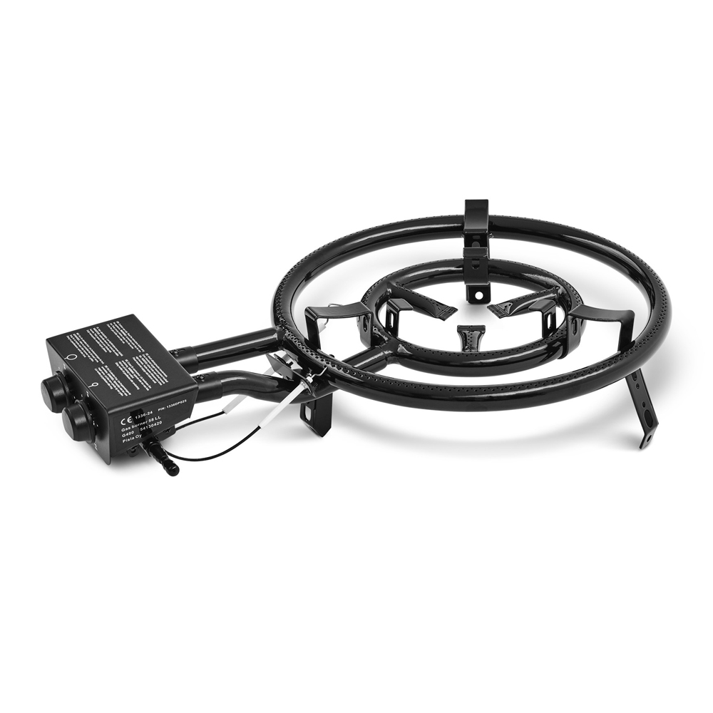 Emaljeret gasbrænder med to gasringe. Passer til stegepladesæt 58 LL.