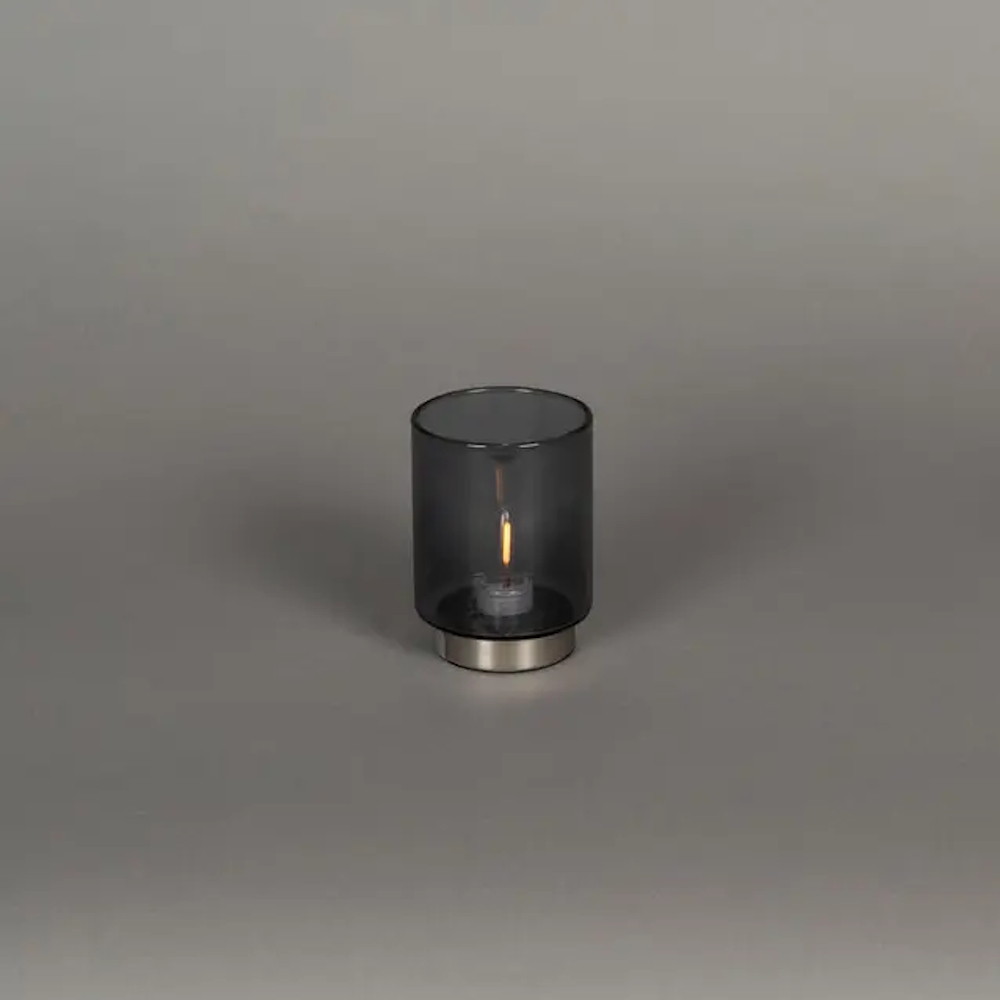 Genopladelig Glaslys LED 8x11,5cm IP20 Sølv/Grå Røget Konstsmide