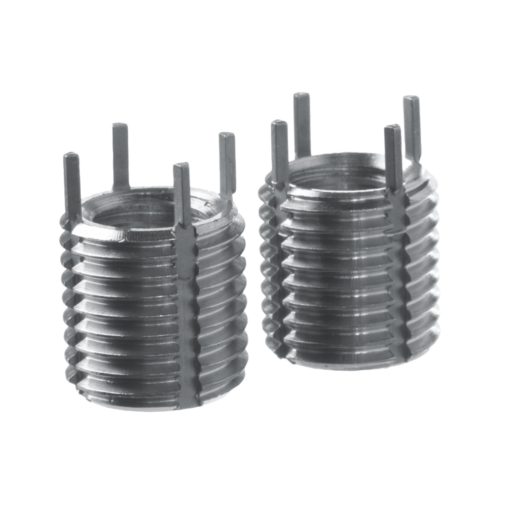 Keylock metrisk gevindindsats. Rustfri. Keylock er et unikt system til hurtig og sikker fastgørelse af gevindindsatser, hvor der stilles de højeste krav til styrke. Hele gevindindsatsen er lavet af massivt rustfrit stål. Almindelige standard fine metriske gevindtappe anvendes ved gevindskæring af hullet. Nøglelåssystemet har en unik låsefunktion, der gør det umuligt for gevindindsatsen at ryste eller rotere ud takket være de fire låsestifter, der endelig slås ned og skæres ind i de eksisterende gevind, efter at hele gevindindsatsen er skruet i. Nem at demontere uden at gøre hullet større eller ødelægge de eksisterende gevind, når det korrekte bor afhængigt af størrelsen anvendes, og får hele gevindindsatsen til at falde i fire dele sammen med låsestifterne.
