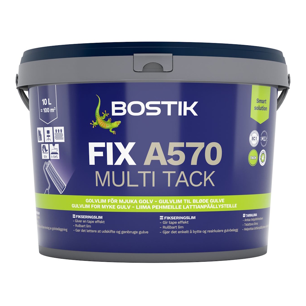 Fix A570 Multi Tack er en vandbaseret fikseringslim, der letter udskiftning og genbrug af gulvbelægninger. Miljøvenlig med lave emissionsværdier, opfylder kravniveau EC1 Plus samt M1.