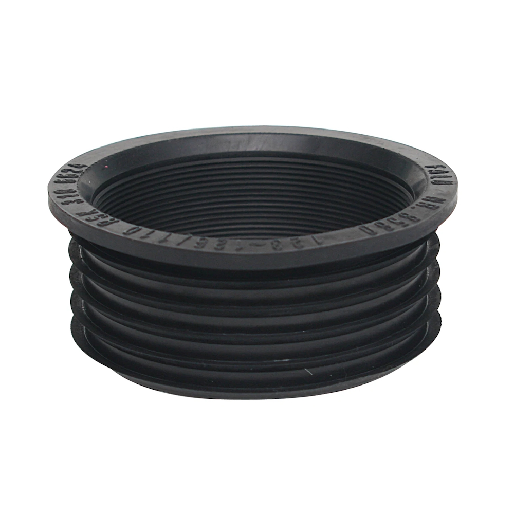 Gumminippel til indendørs afløb, til montering i 4" normal rørmuffe og overgang til PVC/PP-rør på 110mm.