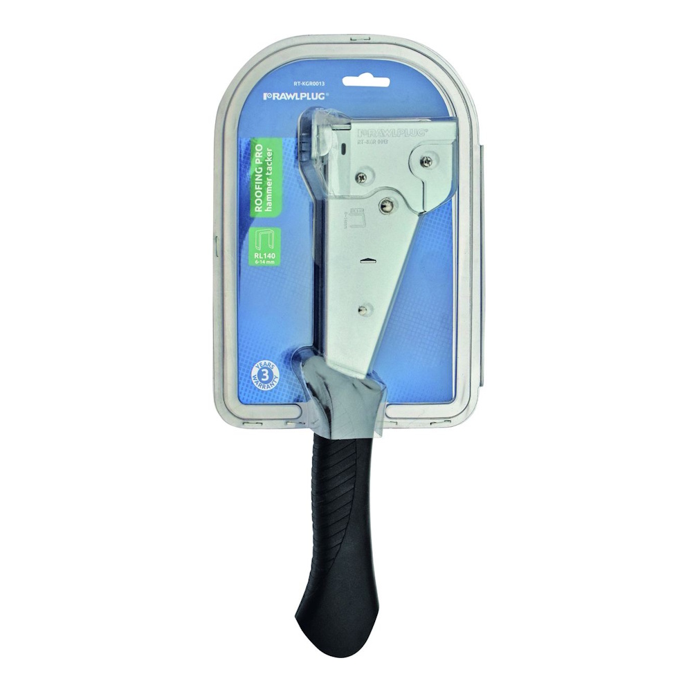 Professionel hæftemaskine til RL140 hæfteklammer, (bagbredde 10,5 mm) 6-14 mm, en tykkere hæfteklammer (1,2 mm) der bruges til tungere installationer. Hæftemaskinen er udstyret med en ekstra stor fod, der er mere skånsom mod underlaget og derfor ideel til fastgørelse af pap.
