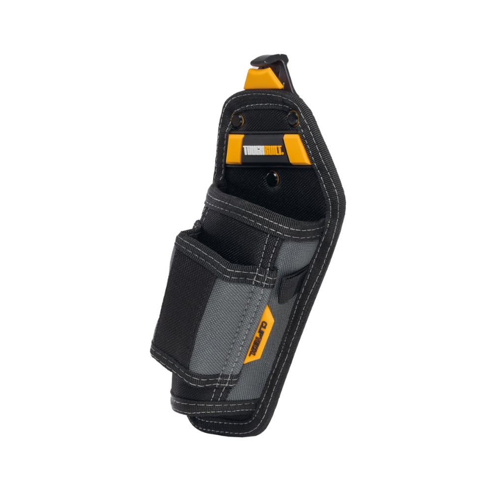 Hammerhylstertaske med den patenterede ClipTech-klips gør det muligt hurtigt at klikke den af og på alle ToughBuilt-bælter med det samme system.