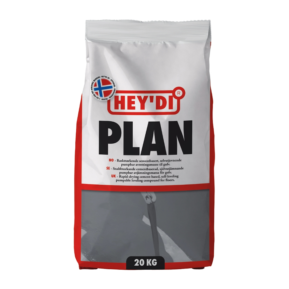 - Forbrug: 1,7 kilo Hey'di Plan pr. mm lagtykkelse pr. m²