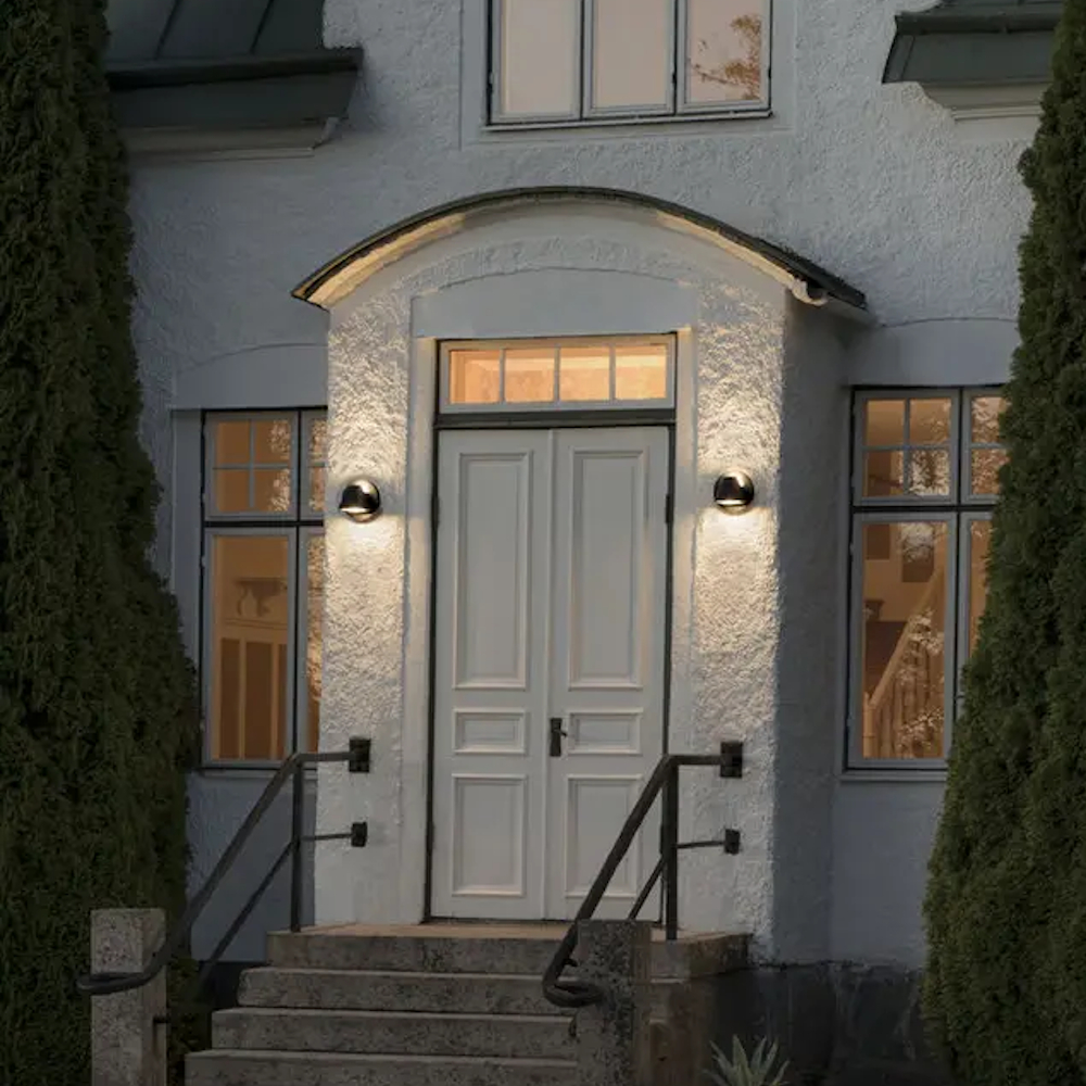 Væglampen Gnosjö Konstsmide Hild 2xGU10 er en stilfuld facadebelysning, der lyser både opad og nedad og skaber smukke skygger på væggen.