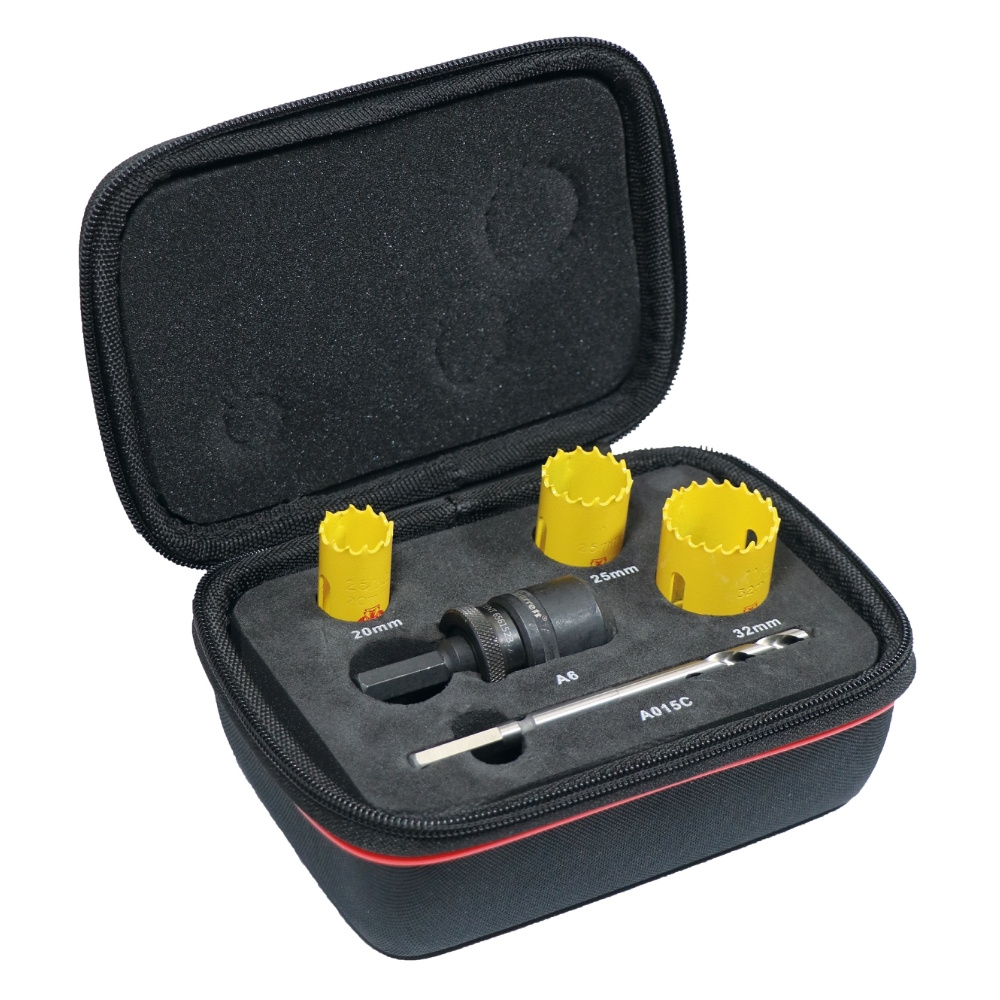 Hulsavsæt egnet til elektrikere. Ideelt til 3 mm rustfrit stål, plader af blødt stål, rør og andre materialer med en tykkelse på op til 13 mm. Velegnet til brug i træ, metal, rustfrit stål og plast.