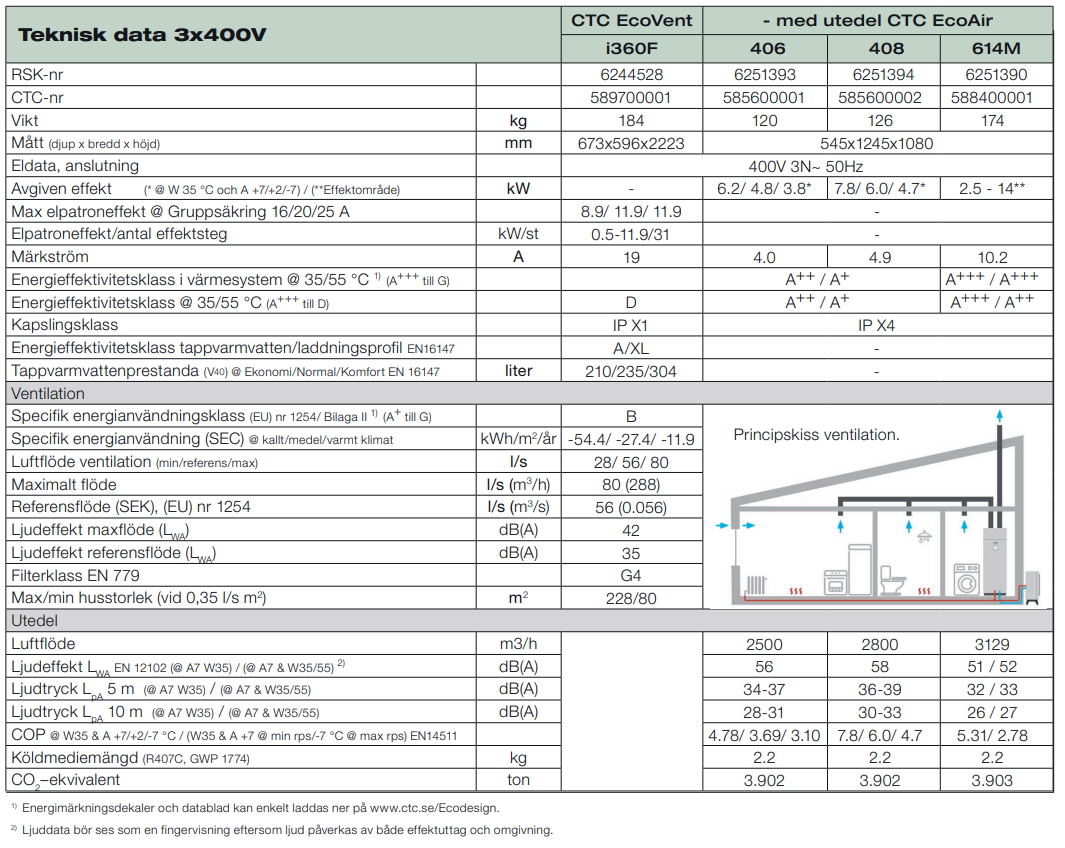 Luft / vand: CTC EcoAir 406-408, 510-622M