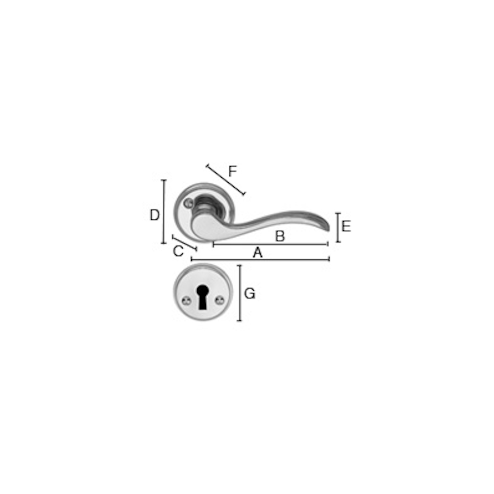 - Mål; A: 133 mm, B: 107 mm, C: 68 mm, D: 21 mm, E: 35 mm, F: 30 mm, G: 50 mm