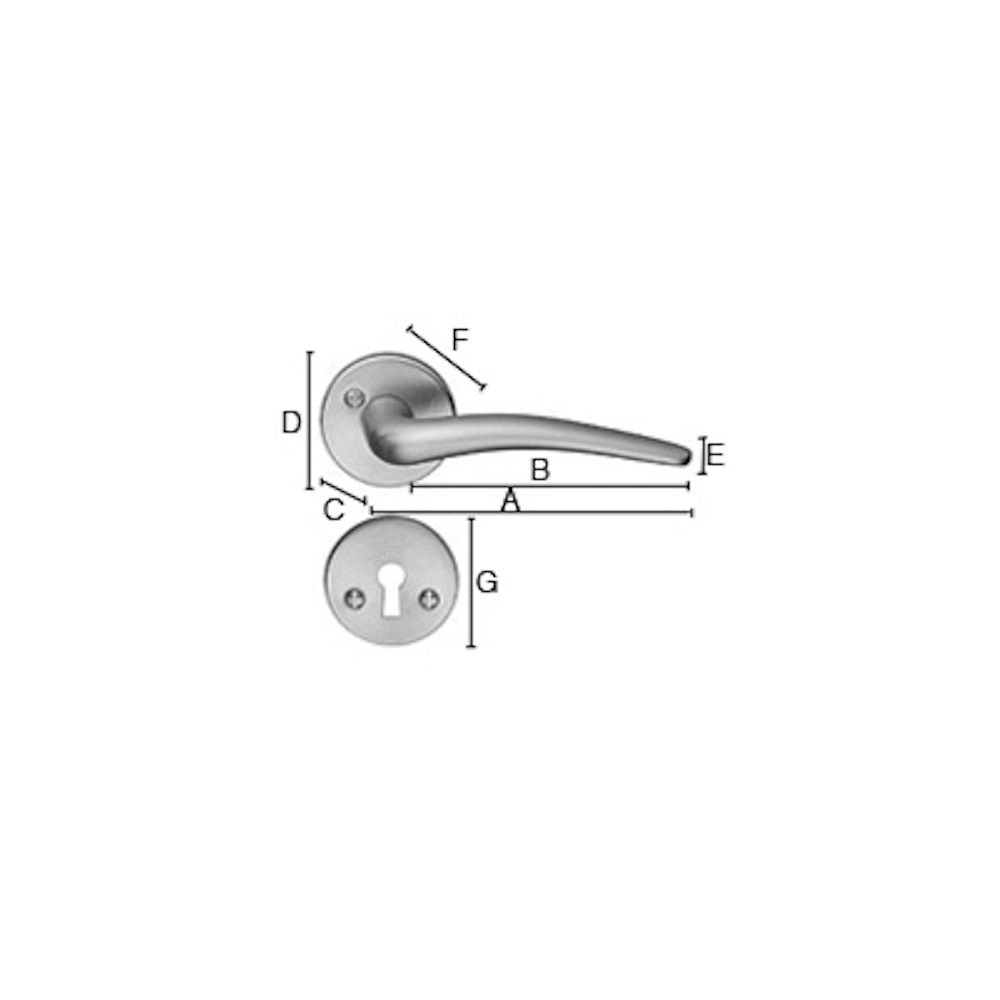 Indvendigt dørhåndtag og nøgleskilte i klassisk design. Prisvenligt håndtag med et slankt design og en grebvenlig mat overflade i børstet krom.