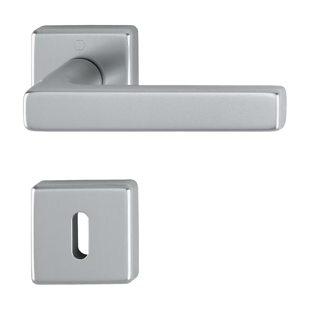 Indvendigt dørhåndtag Dallas i rustfrit, matbørstet finish. Med nøgleplade. Passer til indvendige døre.
