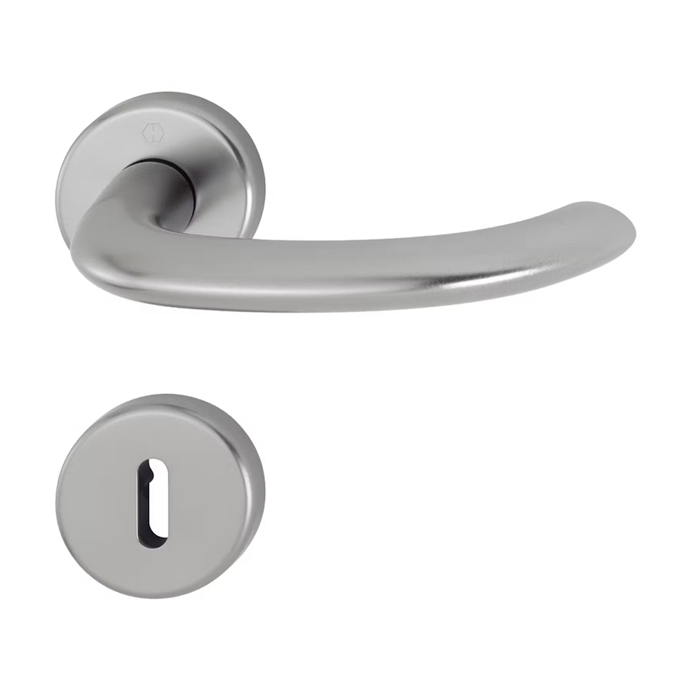 Indvendigt dørhåndtag Marseille i rustfrit, matbørstet finish. Med nøgleplade. Passer til indvendige døre.