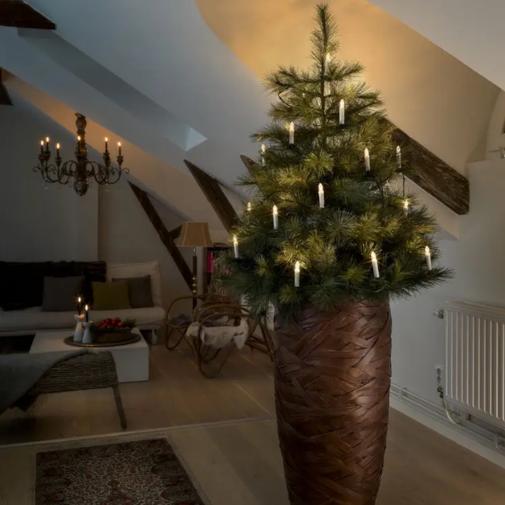 Skab en klassisk julestemning med denne juletræsbelysning med 20 udskiftelige LED-lys. Det grønne kabel passer flot ind i træets grene, og det delbare stik gør installationen nem. Lyset er designet til at ligne et rigtigt stearinlys, hvilket giver en ekstra ægte og traditionel følelse. Tilsluttes direkte til 230V.
