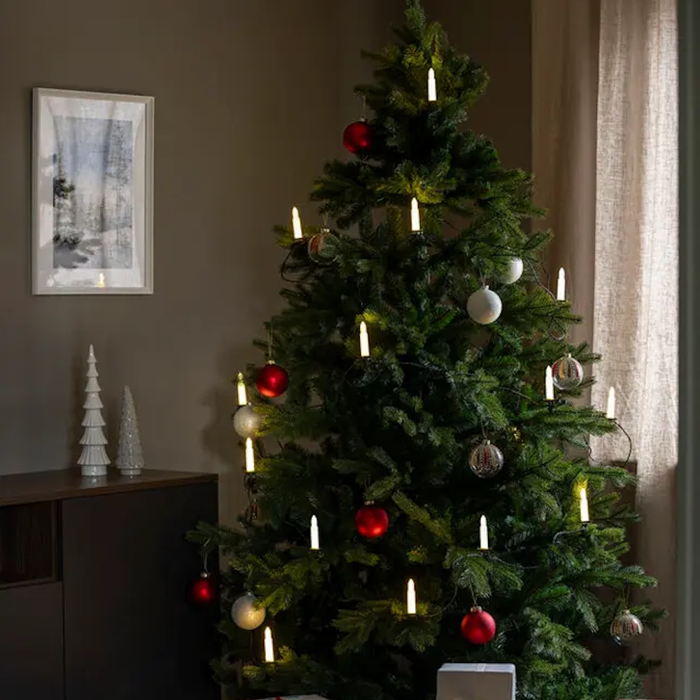 Juletræsbelysning med 25 varm hvide LED-lys i parallelkobling og mørkegrønt kabel. Den varme, bløde glød skaber en hyggelig og magisk julestemning, der fremhæver træets skønhed og spreder varme i hele rummet. Perfekt til at gøre dit hjem ekstra indbydende i juleferien!