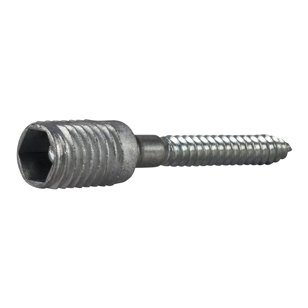 Essve Programa Karmskrue Classic består af en udvendigt gevindskåret zinkmuffe og en gennemgående stålskrue, der kan rotere frit i muffen.